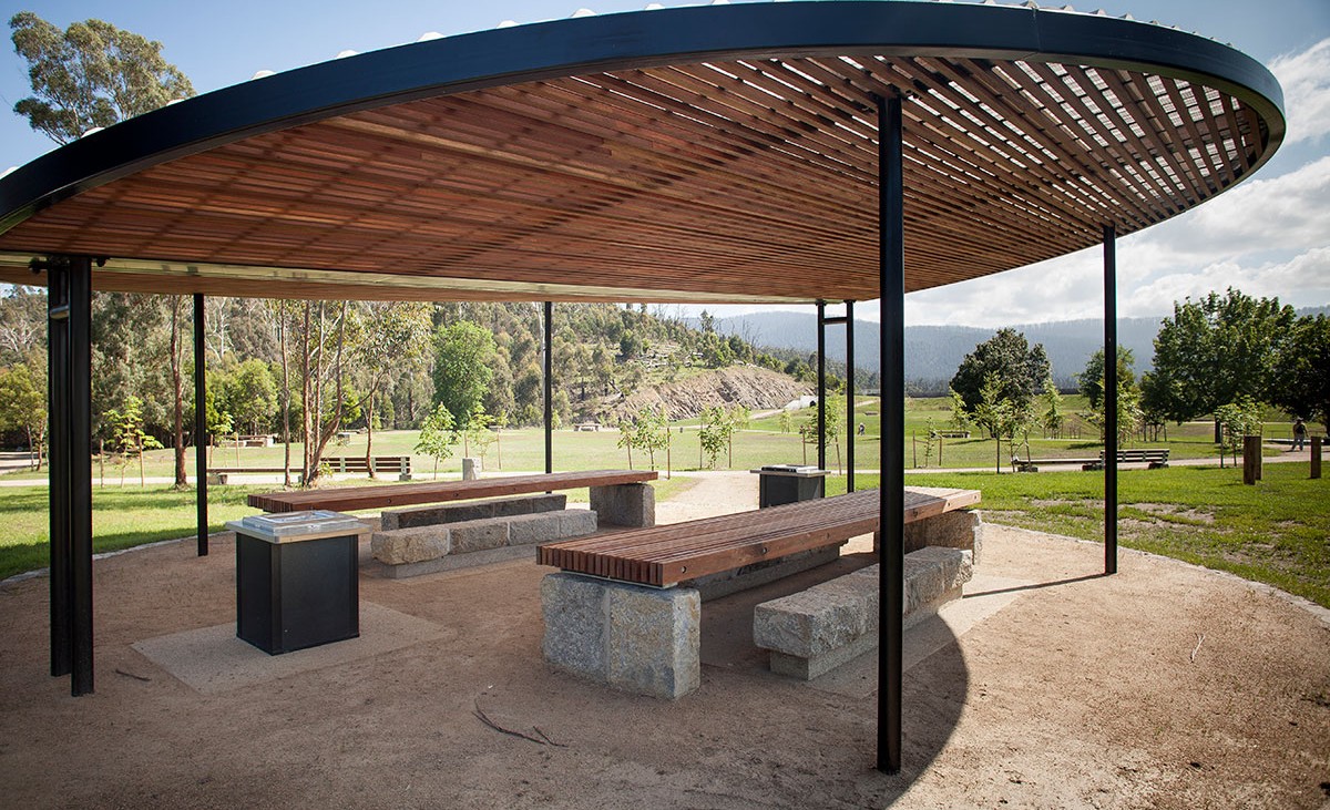 Toorourrong Reservoir Park is a 12 hectare park in Whittlesea, at the base of Mount Disappointment in the Kinglake Ranges. Since the construction of the reservoir in 1885, it has been a popular destination for visitors. The proximity to the rapidly urbanising northern growth area of Melbourne, which includes the suburbs of Plenty, Whittlesea and Cragieburn, means the immediate visitor catchment of the park has grown rapidly over the past two decades. In 2009, the park was destroyed by the Back Saturday bush fires with all the visitor facilities burnt, along with the majority of the park vegetation. In the same year, Melbourne Water commenced works to strengthen the dam wall to meet contemporary safety standards, and to protect Whittlesea from major flooding. Construction of these works occurred in 2011, and has had a significant impact on the park, with the form, layout and character of the lower picnic area altered dramatically. Site Office completed the master plan in 2011 and detailed design and documentation of the new park in 2014. The park opened in late 2015.